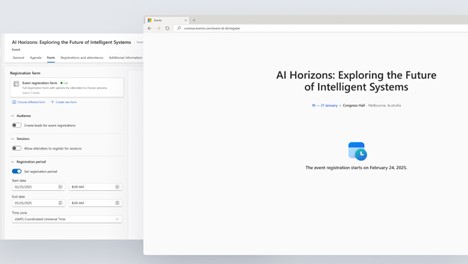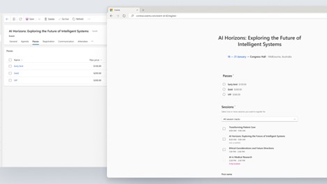 — O novo portal de eventos permite criar rapidamente um site onde os clientes podem consultar eventos, detalhes das sessões e agendas. Os clientes podem efetuar as inscrições usando o formulário de inscrição do evento.